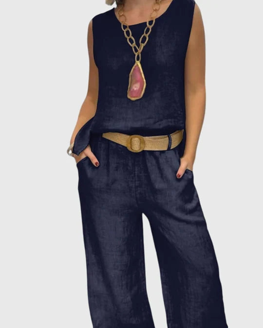 • Effortless Chic: This two-piece set combines a sleeveless top and wide-leg pants for an effortlessly stylish look.