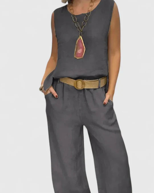 • Effortless Style: This chic two-piece set combines a sleeveless top with wide-leg pants, perfect for any occasion.